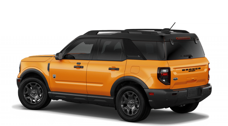 - BLACK APPEARANCE PACKAGE -inc: textured matte black hood graphic and unique badges w/black accents Painted Shadow Black Roof Cargo Mat Custom accessory pre-installed Wheels: 17 Matte Black-Painted Aluminum Front & Rear Floor Liners w/o Carpet Mats Custom accessory pre-installed Liftgate w/Black BRONCO SPORT Lettering Carbon Black Grille w/Blk Painted BRONCO Lettering